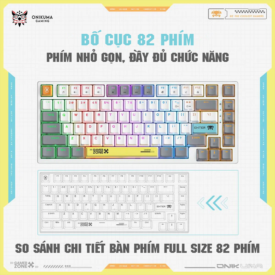 Bàn phím cơ ONIKUMA G58 Hot-Swappable 82 phím RGB gaming có dây – được thiết kế để mang đến trải nghiệm chơi game vượt trội với nhiều tính năng hiện đại và thiết kế tinh gọn. Trang bị switch cơ có thể thay nóng (hot-swappable), người dùng dễ dàng tùy chỉnh bằng cách thay thế switch mà không cần hàn. Với tuổi thọ phím lên đến 50 triệu lần nhấn, bàn phím đảm bảo độ bền bỉ và hiệu suất ổn định trong thời gian dài.