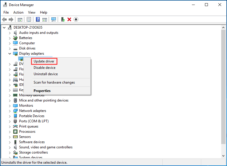 Bước 2: Nhấp vào Display adapters, nhấp chuột phải vào driver card đồ họa, rồi chọn Update driver.