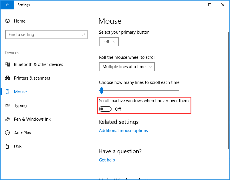 Bước 2: Bên dưới tab Mouse, tìm tùy chọn Scroll inactive windows when I hover over them, rồi tắt nó đi. Sau đó, kiểm tra xem vấn đề đã được giải quyết hay chưa.