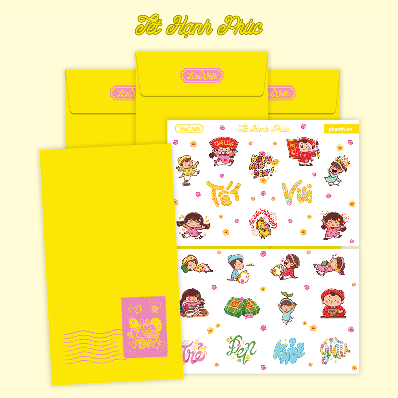 TẾT HẠNH PHÚC – phong bao màu vàng