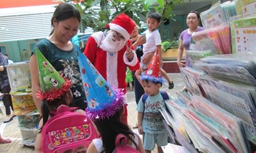 PT - Hội sách Mầm Non Book4B chiều ngày 21/12 đã góp thêm Sắc màu Giáng Sinh cho ngôi trường xinh xắn Mầm Non Họa Mi 1 (Q5). Đâu đâu cũng rộn ràng những trang trí Noel đẹp mắt, Hội sách mang đến niềm vui đọc sách, Ông già Noel vui tính như một thông điệp Giáng Sinh ngọt ngào, thú vị dành cho các thiên thần nhỏ nơi đây.