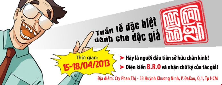 Đừng quên nha các bạn!!! Tuần lễ ký tặng Học Sinh Chân Kinh sẽ vẫn diễn ra cho đến hết ngày 18/04/2013 tại công ty Phan Thị - 53 Huỳnh Khương Ninh, P. Đa Kao, Q.1, TP.HCM.