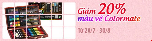 Từ ngày 20/07 đến hết ngày 30/08, nhà sách trực tuyến Bookbuy sẽ áp dụng chương trình giảm giá 20% cho khách hàng khi mua các sản phẩm Colormate.