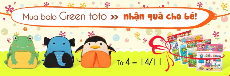 Từ ngày 4/11 đến ngày 14/11, Bookbuy áp dụng chương trình quà tặng 1 Puzzle (xếp hình) cho các khách hàng mua sản phẩm Balo mẫu giáo Green ToTo (180,000đ)