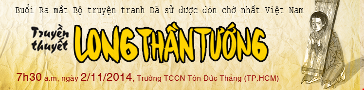 Đăng ký tham dự buổi ra mắt Long Thần Tướng để biết thêm thông tin và gặp gỡ nhóm tác giả Thành Phong – Khánh Dương – Mỹ Anh cùng các khách mời là những họa sỹ, nhà thiết kế mỹ thuật nổi tiếng.