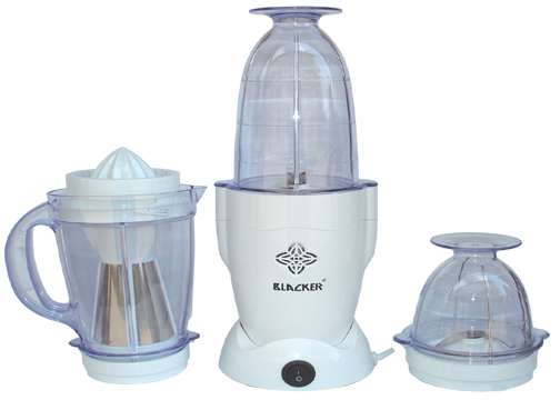 Máy xay ép đa năng Blacker BLJ262B tích hợp 3 trong 1, có khả năng đảm nhiệm chức năng của máy xay sinh tố, máy ép trái cây và máy xay thịt. Máy gồm 3 lưỡi dao, 3 cối xay và 1 dụng cụ vắt cam, bạn chỉ cần lắp lưỡi xay và cối xay phù hợp với nhu cầu sử dụng. Máy có hệ thống ngắt điện khi quá tải, đảm bảo máy hoạt động ổn định và lâu dài. Máy xay ép đa năng Blacker BLJ262B nhỏ gọn sẽ mang đến cho người dùng nhiều tiện ích và cảm giác thú vị khi sử dụng.
